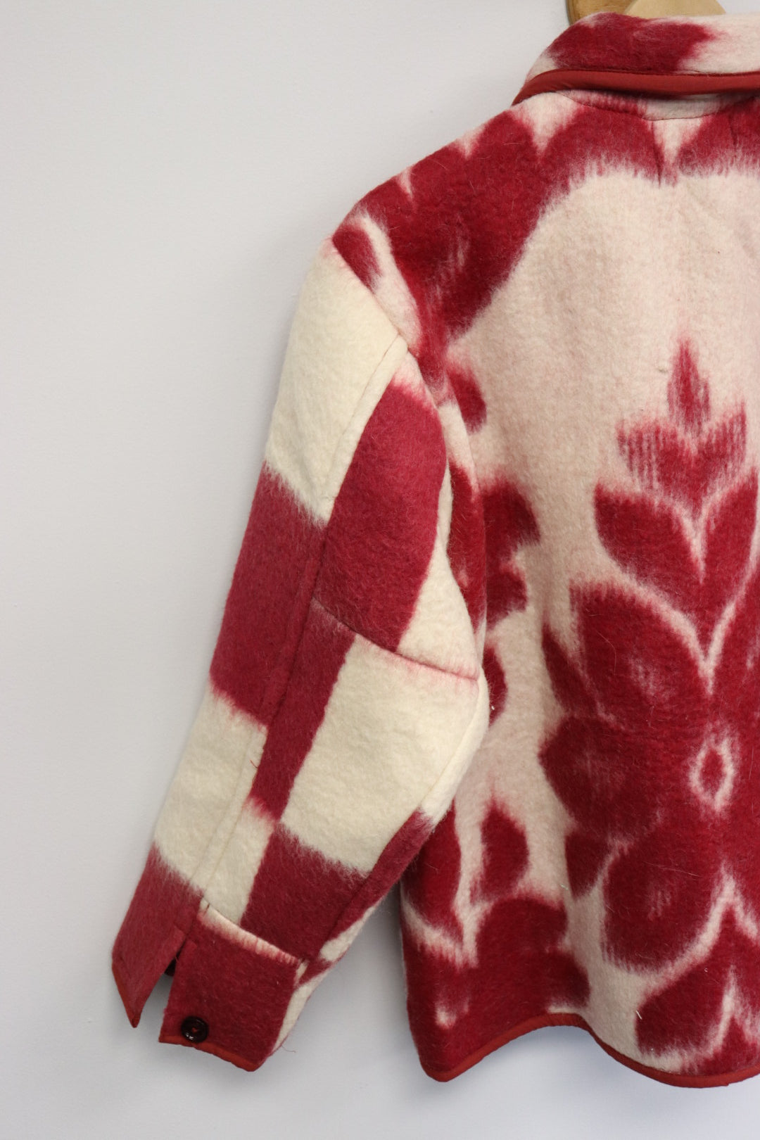 All coats are made from vintage quilts and textiles.  While they have all been cleaned, there will be aging to coat with varying degrees of wear, staining, fraying, and mending. We think this adds to the uniqueness and story of the coat.