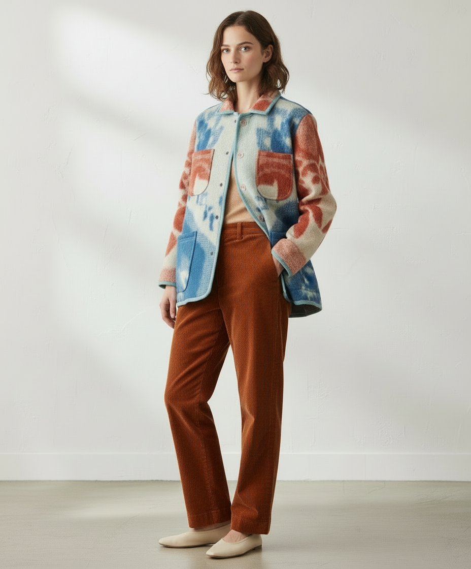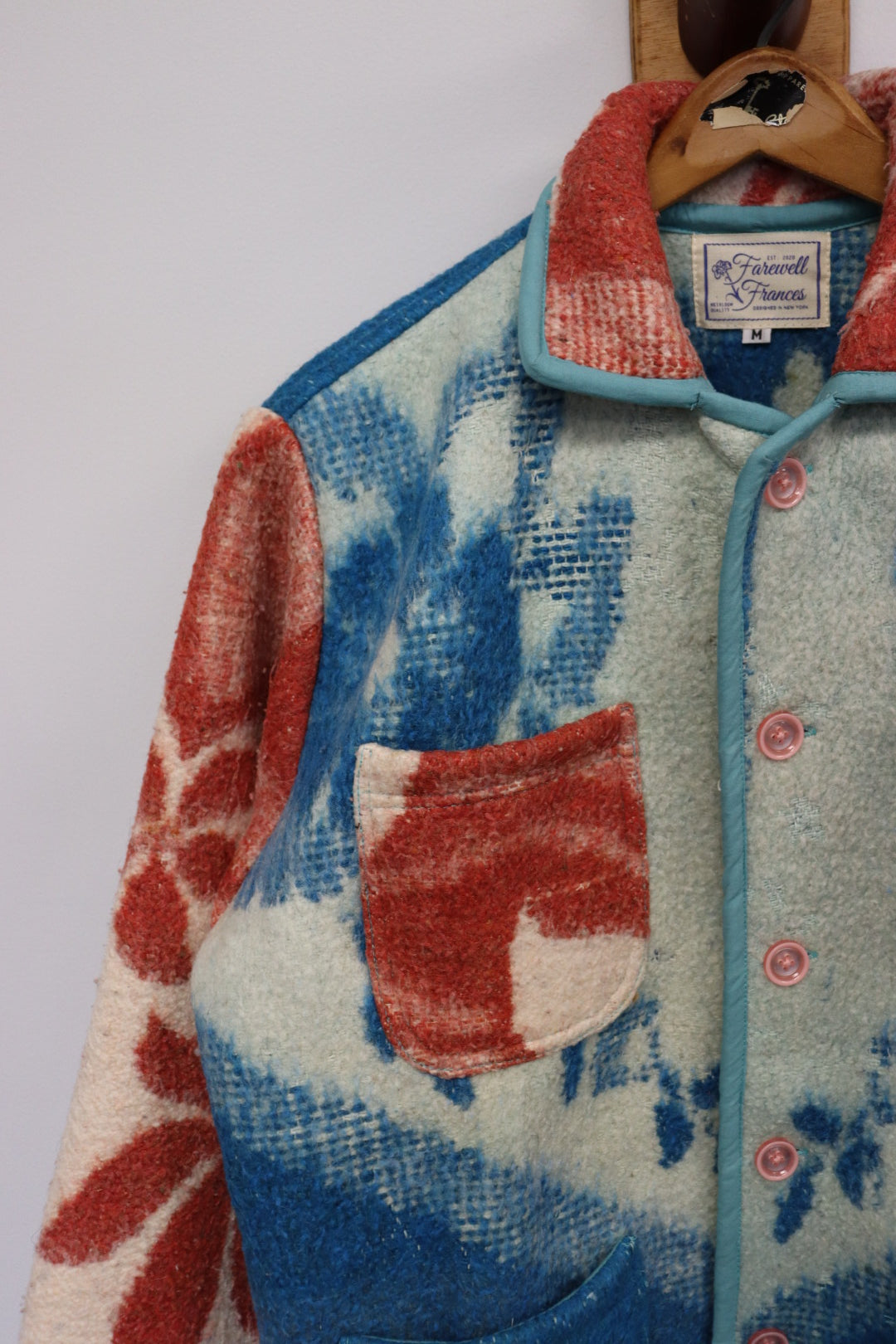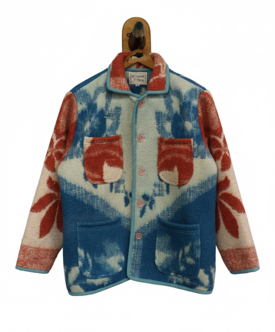 Our Camp Blanket Coats are here! We got so many requests for more Camp Blanket Coats and are so excited to finally have some for you. This coat is made from a vintage wool camp blanket and is in our Claude Coat style. It is inspired by French workwear from the early 1900s, and has four front patch pockets. The 2-piece sleeve has a single button closure. Edges and inner seams are finished with cotton piping.