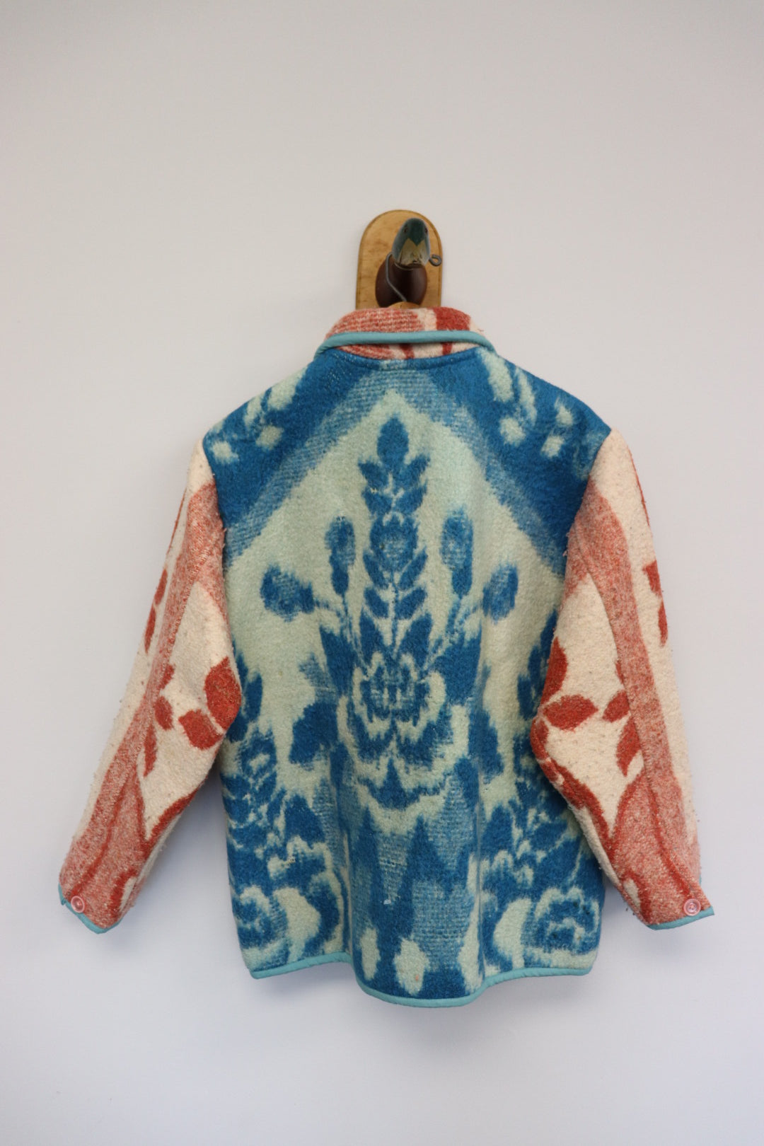 All coats are made from vintage quilts and textiles.  While they have all been cleaned, there will be aging to coat with varying degrees of wear, staining, fraying, and mending. We think this adds to the uniqueness and story of the coat.