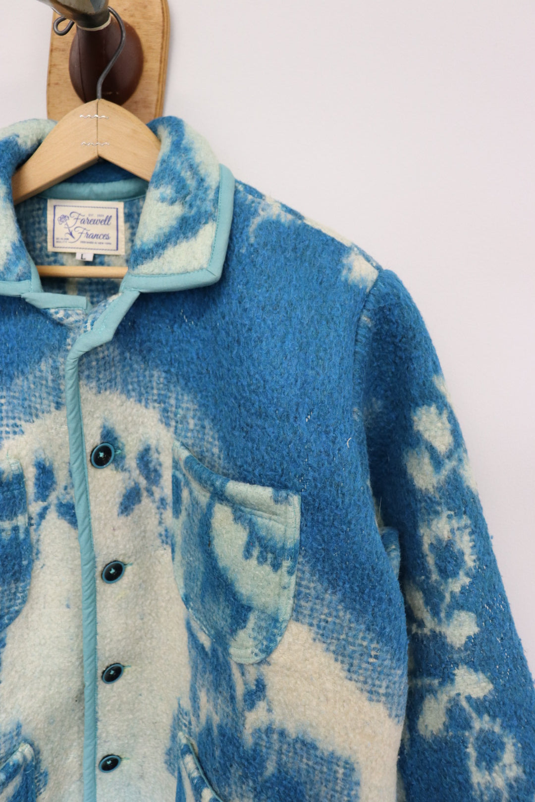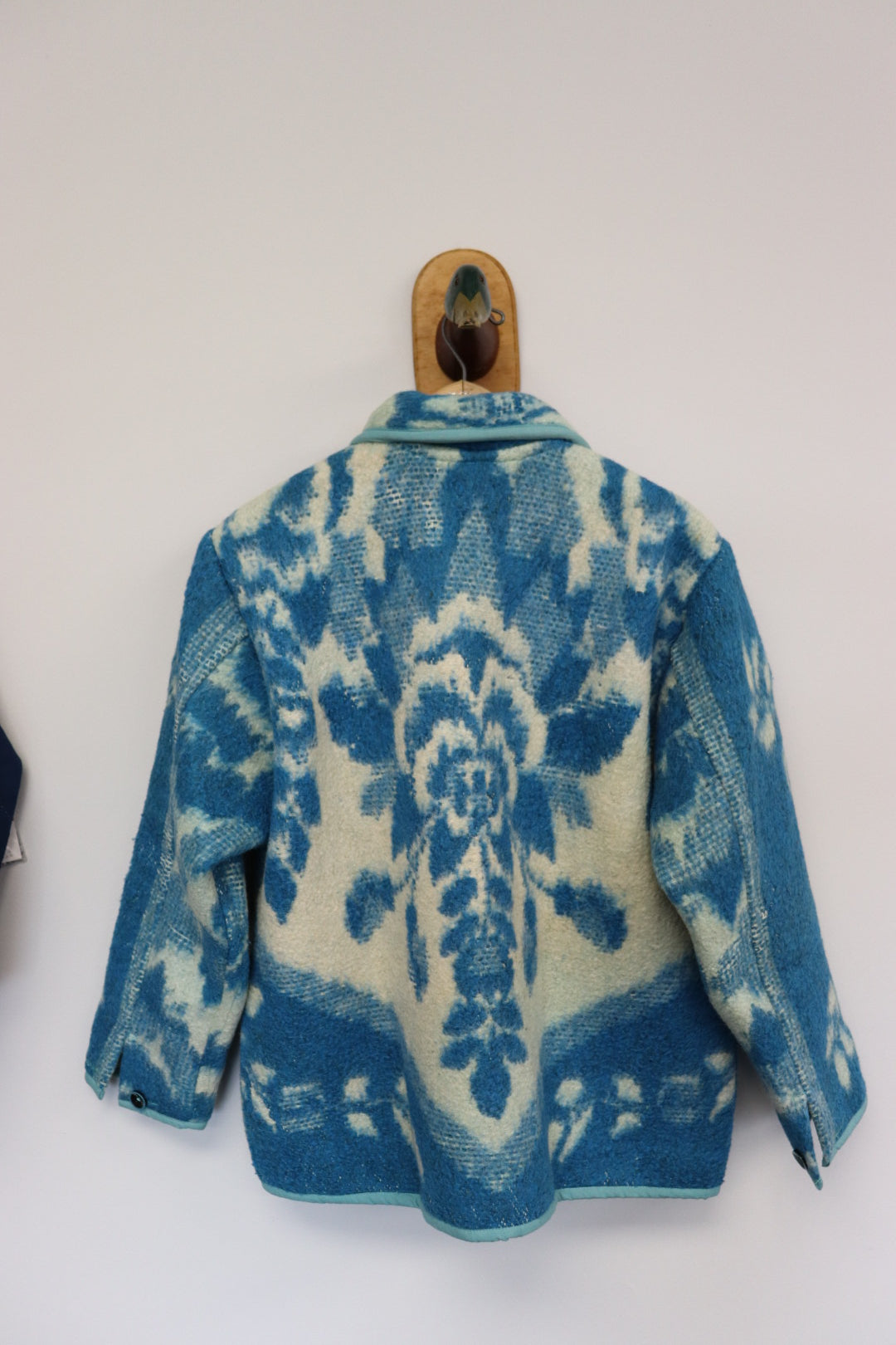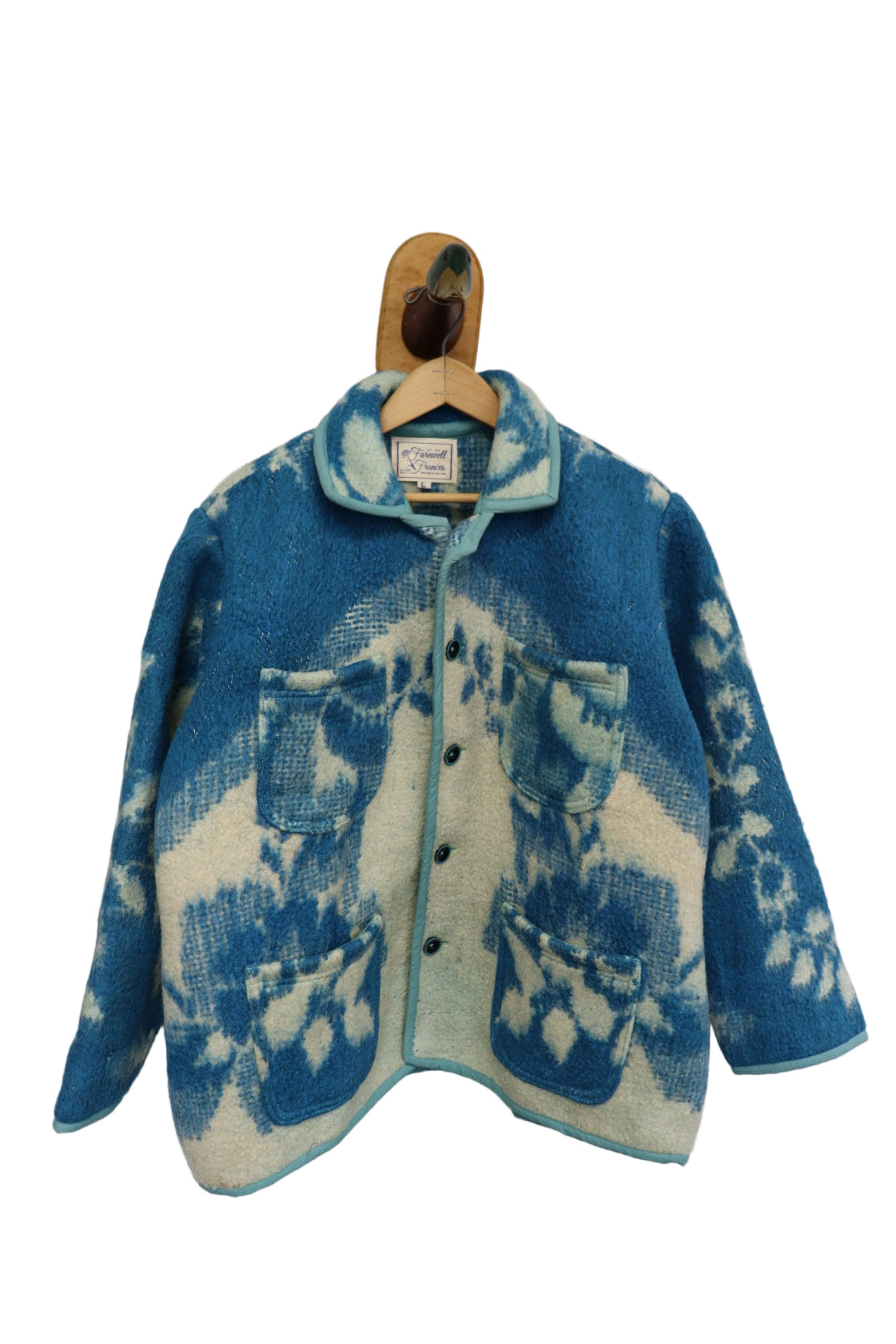 All coats are made from vintage quilts and textiles.  While they have all been cleaned, there will be aging to coat with varying degrees of wear, staining, fraying, and mending.  We think this adds to the uniqueness and story of the coat.