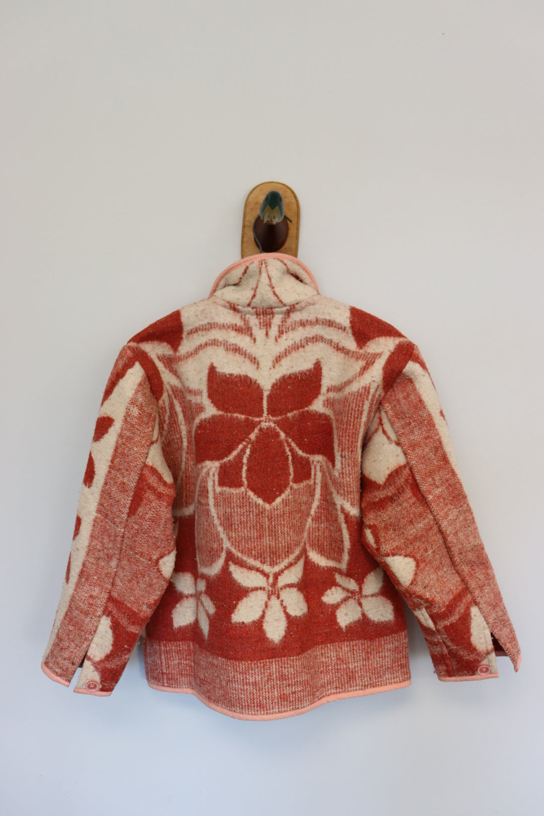 All coats are made from vintage quilts and textiles.  While they have all been cleaned, there will be aging to coat with varying degrees of wear, staining, fraying, and mending. We think this adds to the uniqueness and story of the coat.