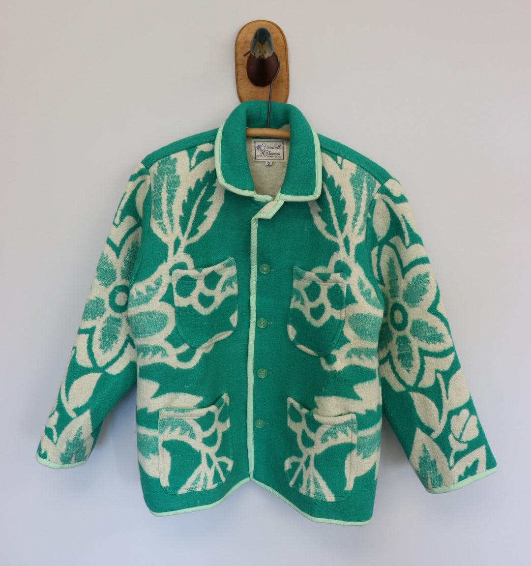 All coats are made from vintage quilts and textiles.  While they have all been cleaned, there will be aging to coat with varying degrees of wear, staining, fraying, and mending. We think this adds to the uniqueness and story of the coat.
