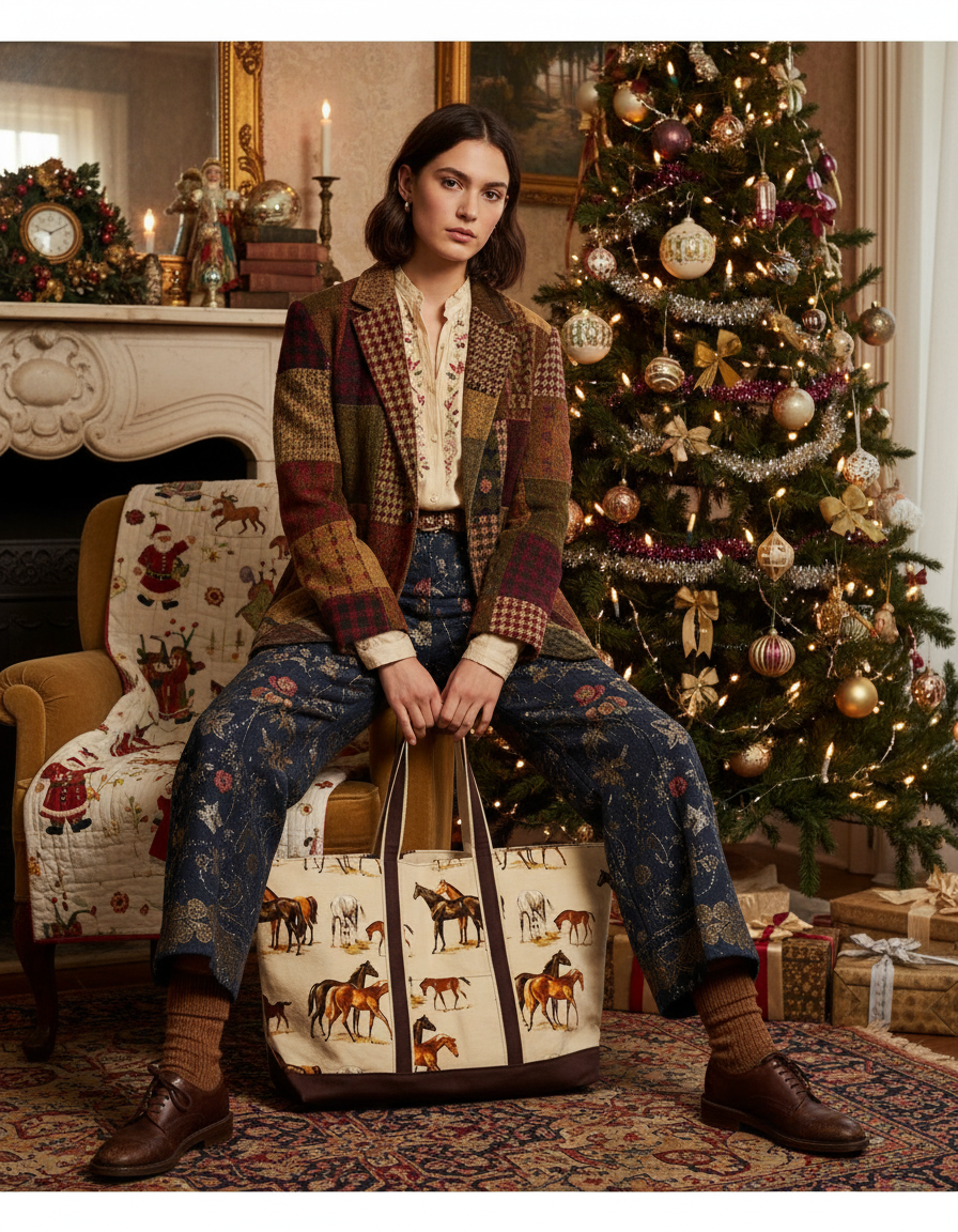 Our Sold out XL Horse Boat Tote is back! It is THE perfect go to oversized tote. It is made of 100% thick cotton canvas and lined in cotton with two 5.5” pockets on both front and back.